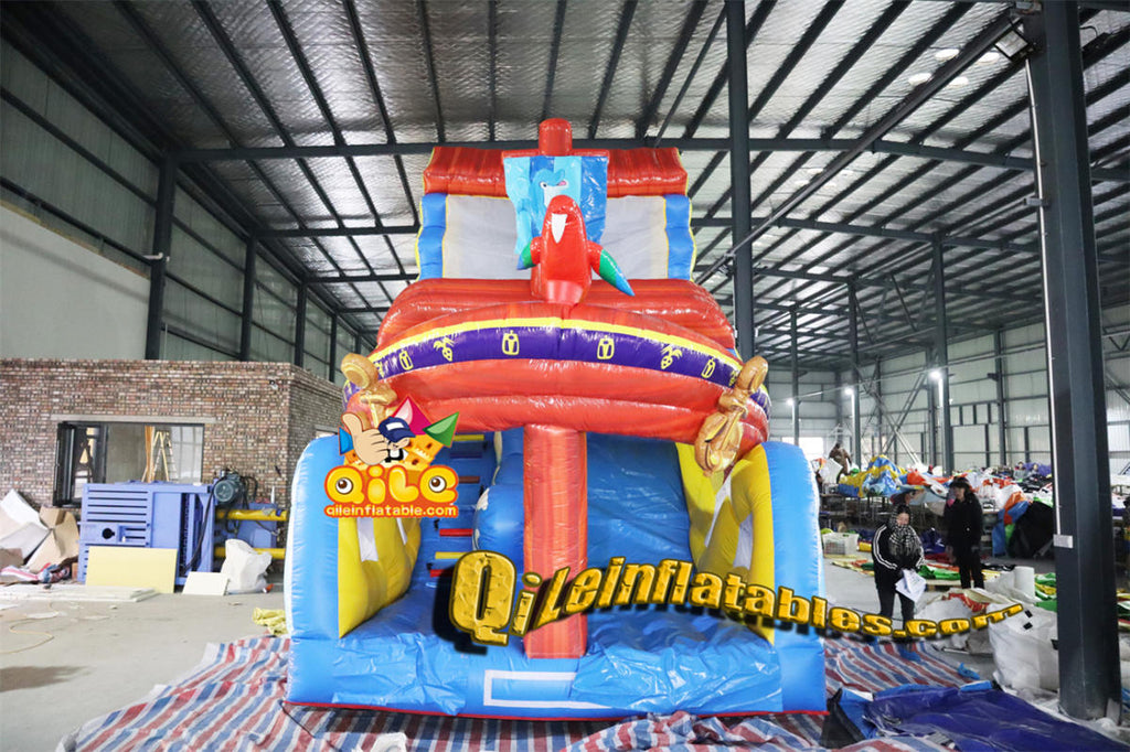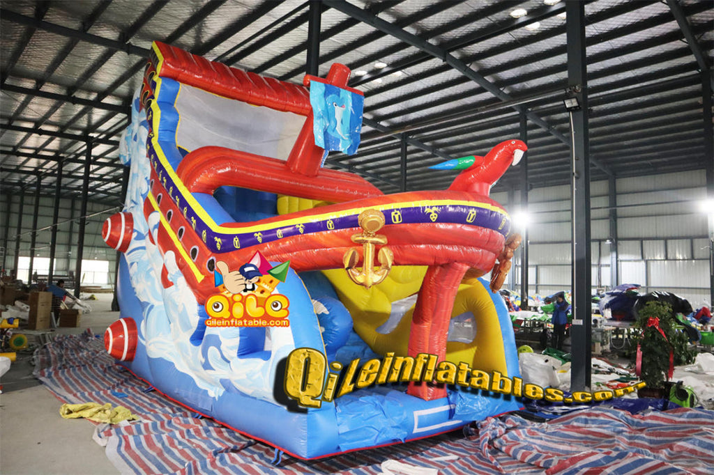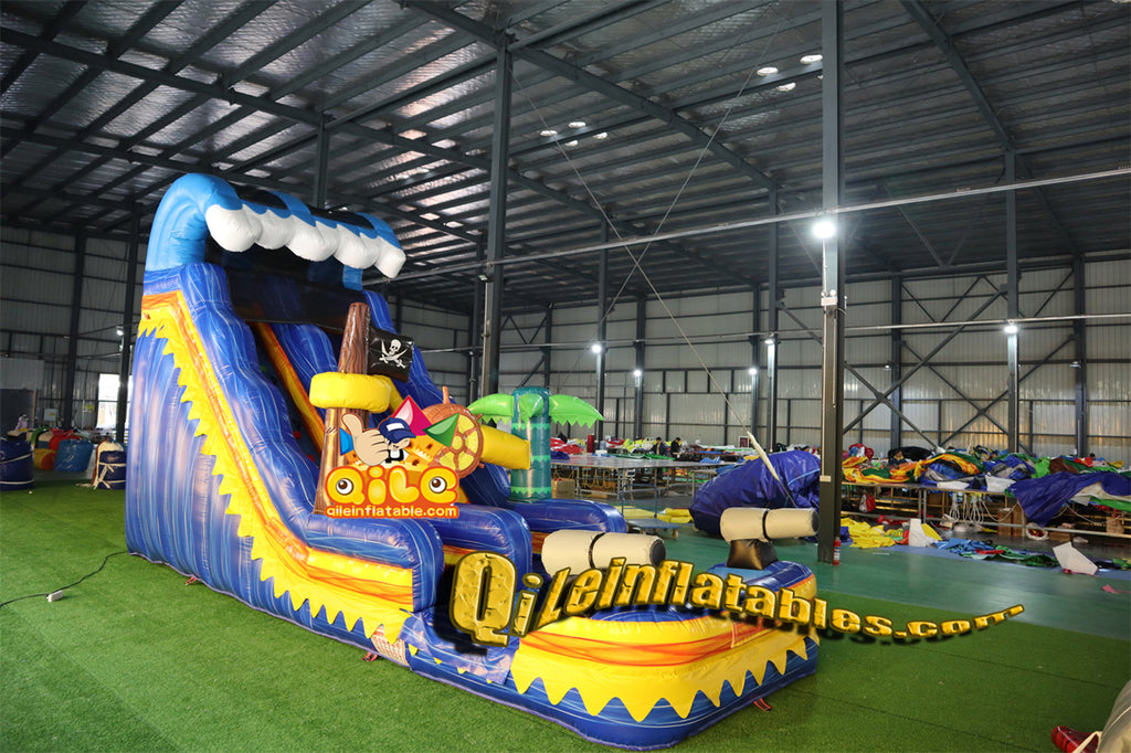 qile-6011 Blue water ripples, pirate ship theme water slide with pool