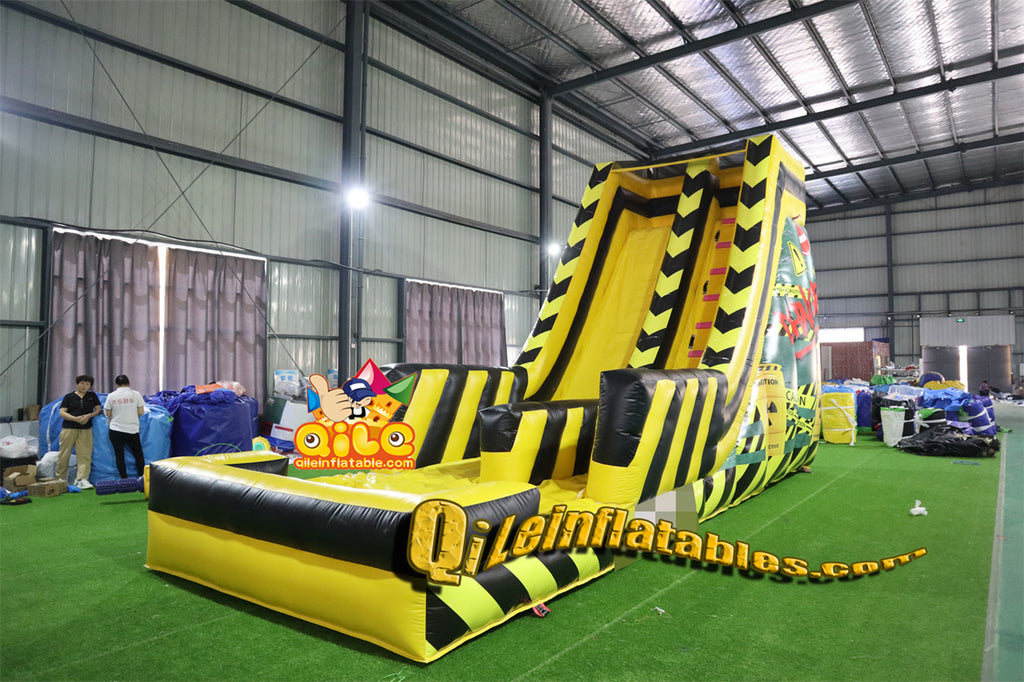 qile-6009 Double slide inflatable Yellow and green slide water slide with pool