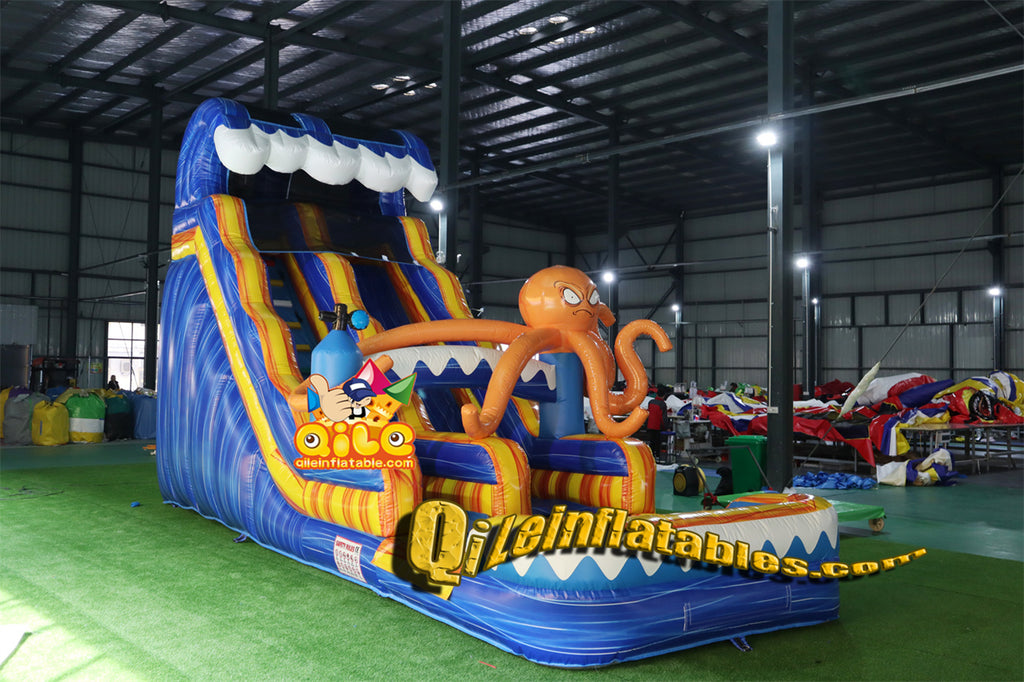 qile-6010 Blue water ripples, ocean theme, octopus water slide with pool