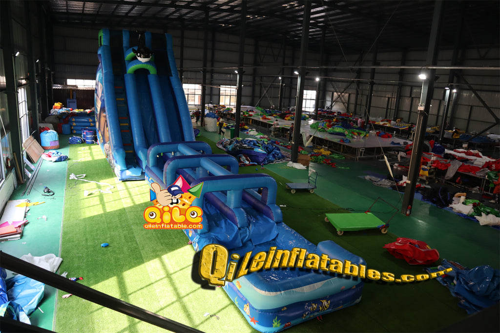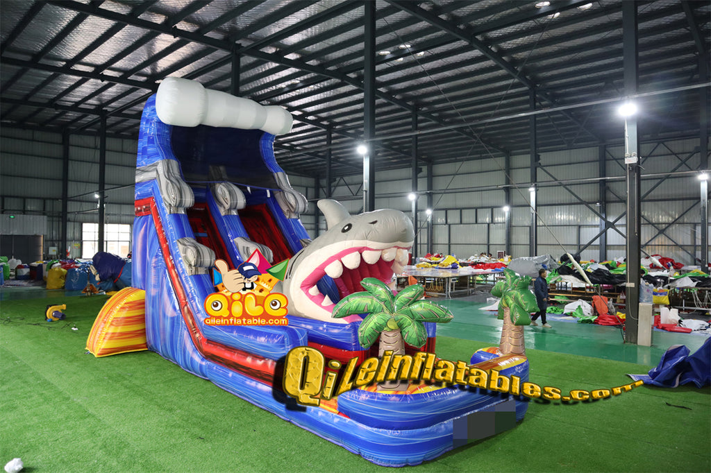 qile-6019 18' Shark Plam Tree Water Slidewater slide with pool