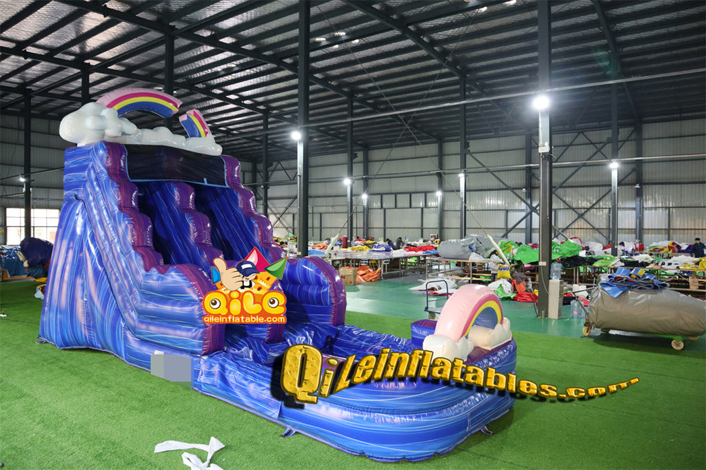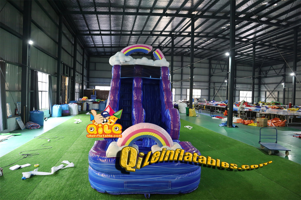 qile-6021 16' Rainbow Clouds Blue Water Ripples water slide with pool