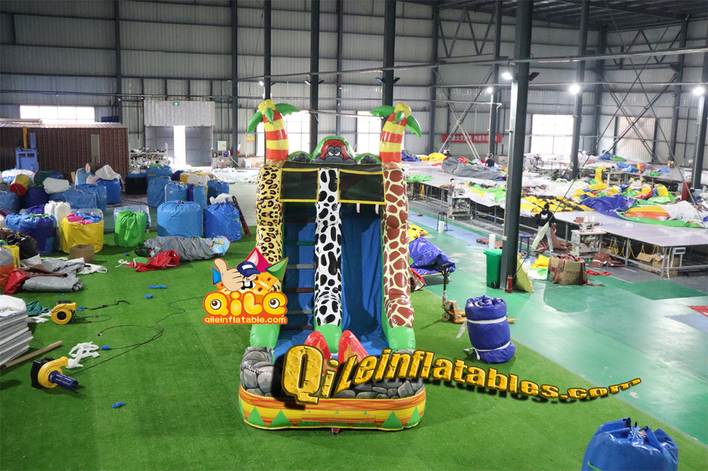 qile-6022 14' Animals tropical rainforest water ripples water slide with pool