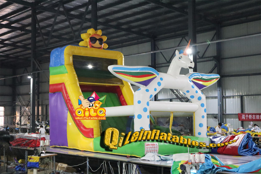 qile-7015 inflatable dry slide Rainbow Pegasus slide