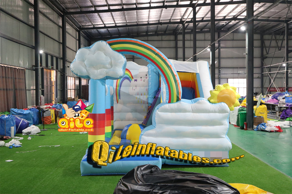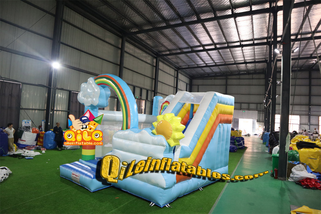 qile-3003 Rainbow channel large slide with pool inflatable fun playground