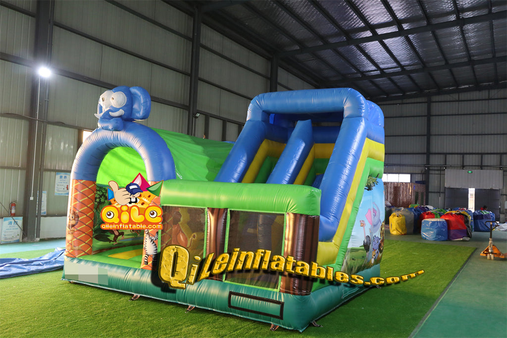 qile-2040 elephant inflatable castle combo for sales