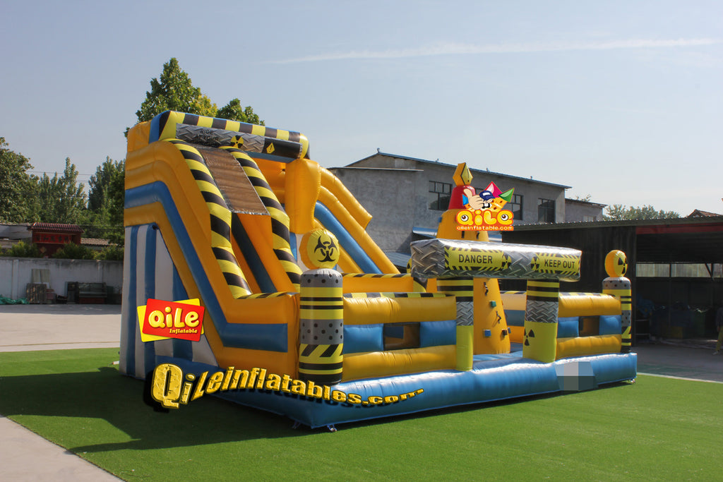 qile-2024045 Danger warning line nflatable bouncy with slide