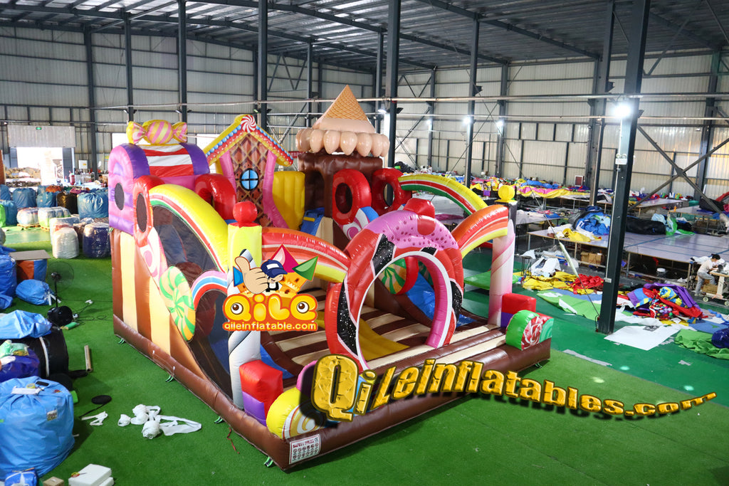 qile-2024087 Candy house inflatable castle combo for kids
