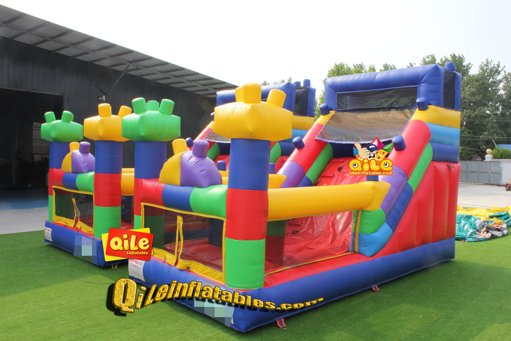 2024033-1 Lego bricks inflatable dry slide castle for sale