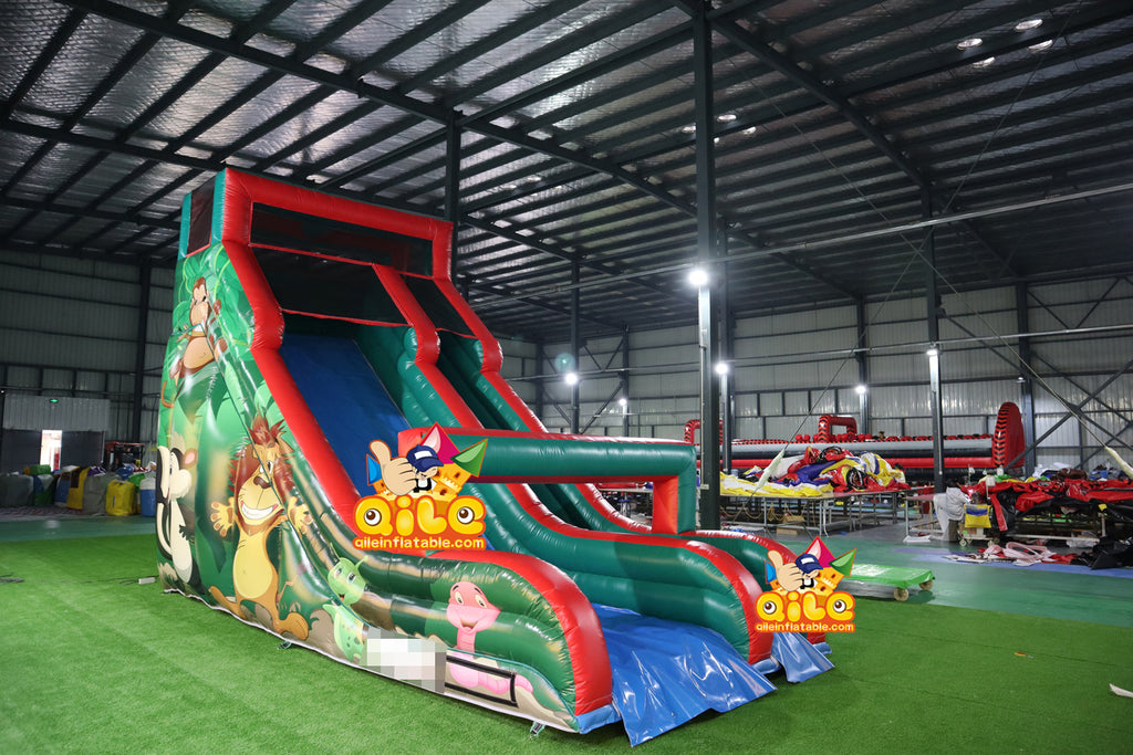 qile2024089 Dinosaur and Chimpanzees slide inflatable dry slide