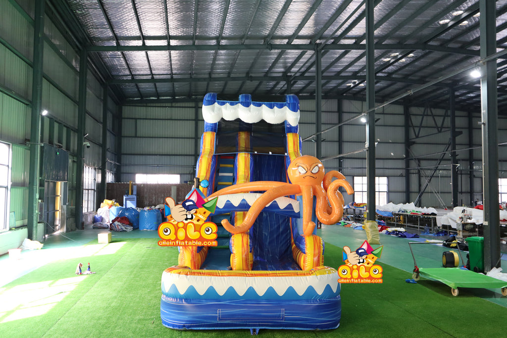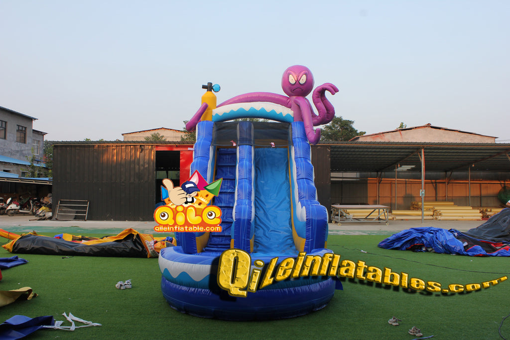 qile-6022 14' Animals tropical rainforest water ripples water slide with pool