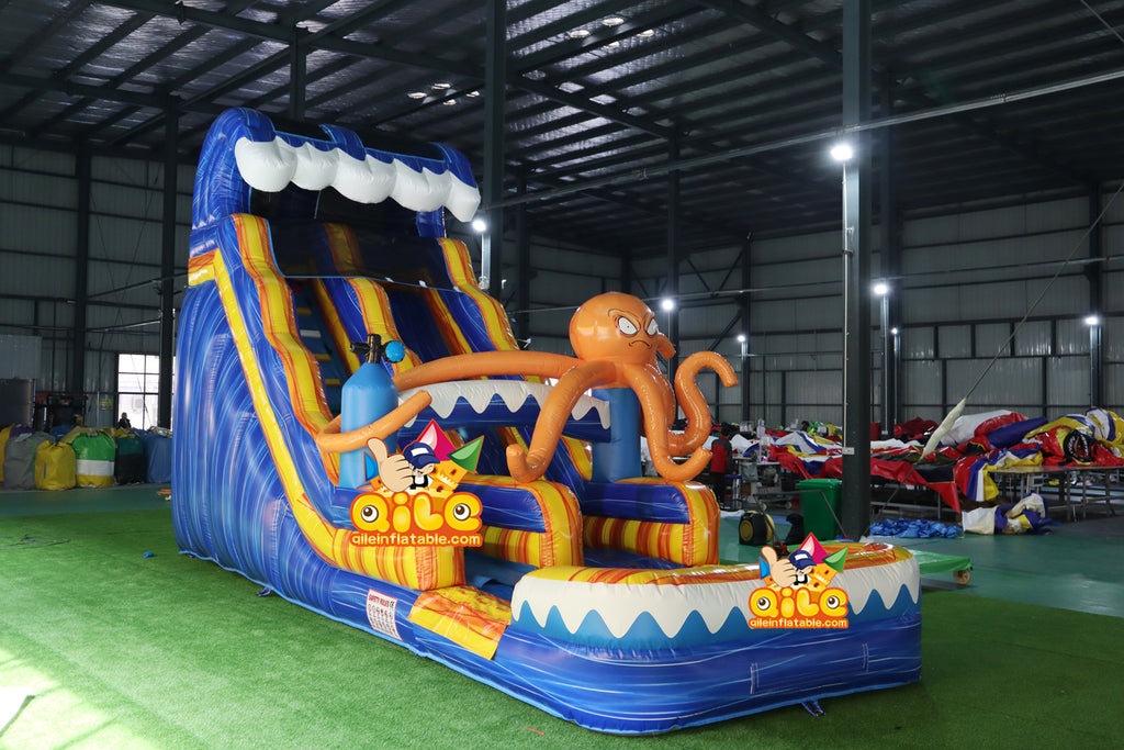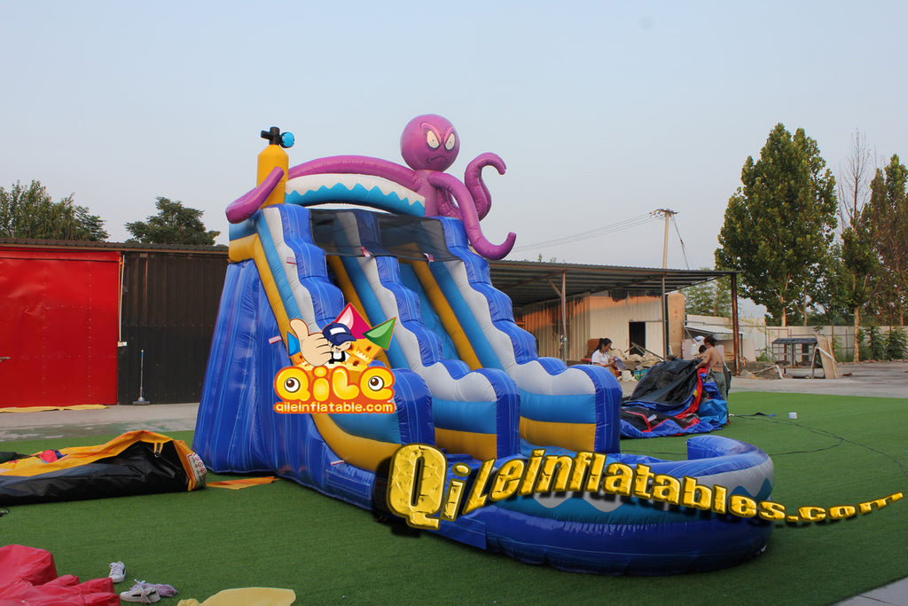 qile-6013 Re and Blue water ripple slide water slide with pool