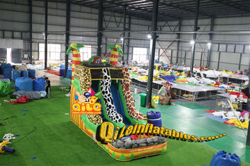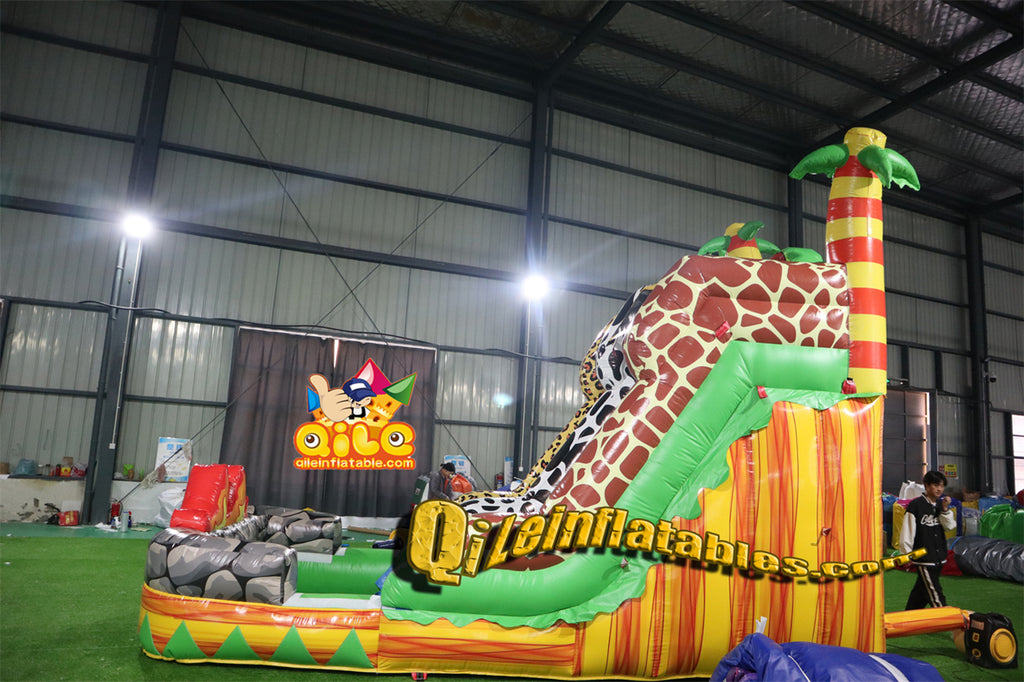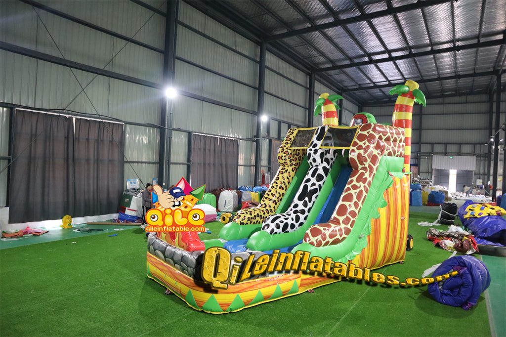 qile-6022 14' Animals tropical rainforest water ripples water slide with pool